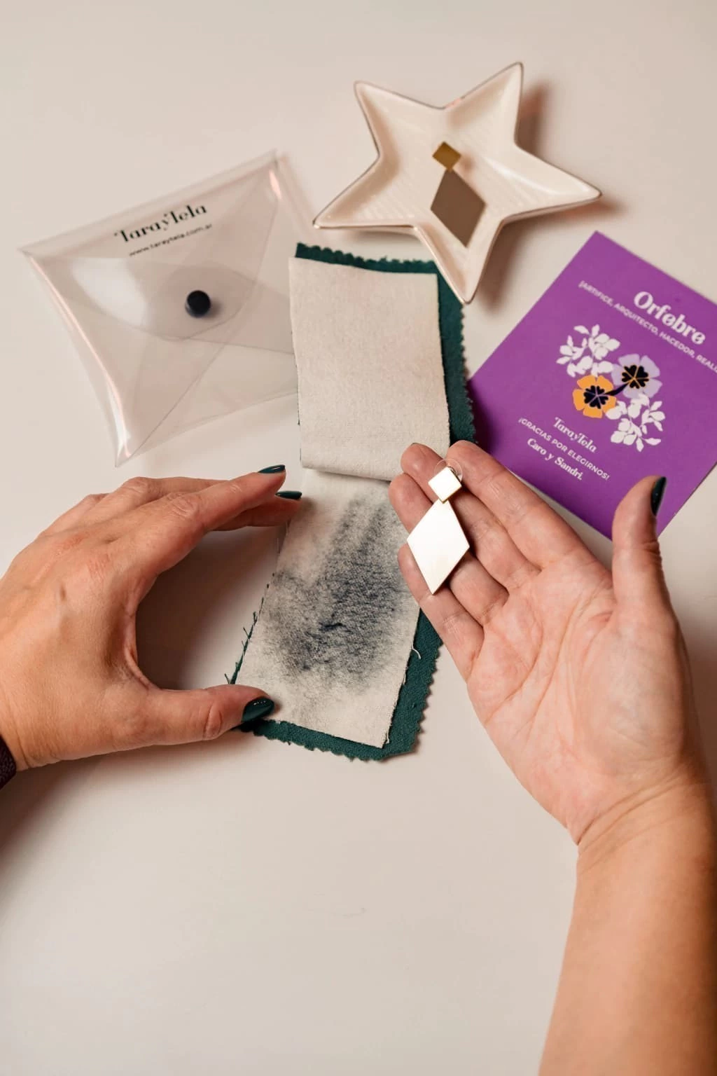 ¡Completa tu experiencia TARAYTELA con nuestro exclusivo kit de regalo! Descubre la versatilidad del estuche de vinilo transparente, adornado con nuestro distintivo logo TARAYTELA, perfecto para reutilizar y almacenar tus joyas favoritas o cualquier otro tesoro.